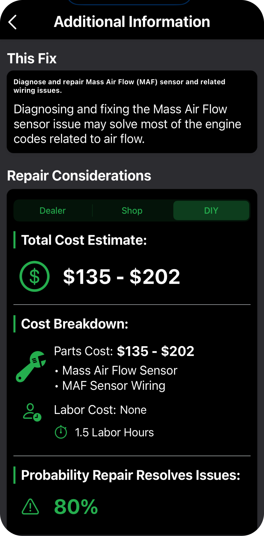 Get detailed information you can take straight to the mechanic to ensure you’re getting a fair deal.