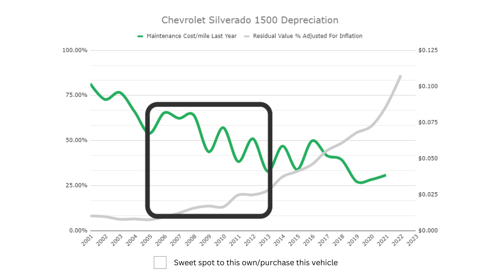 Keep in mind that just because the vehicle costs the least to own in the sweet spot we have outlined here, you still may not want to own the vehicle during these depreciation sweet spot years. Although vehicles depreciate less as they get older, they have more repairs. Duh right? However, keep in mind that repairs don’t just cost you money, they cost you time. Reliability is the difference between being able to make it to your destination on time or missing an opportunity because the car broke down.