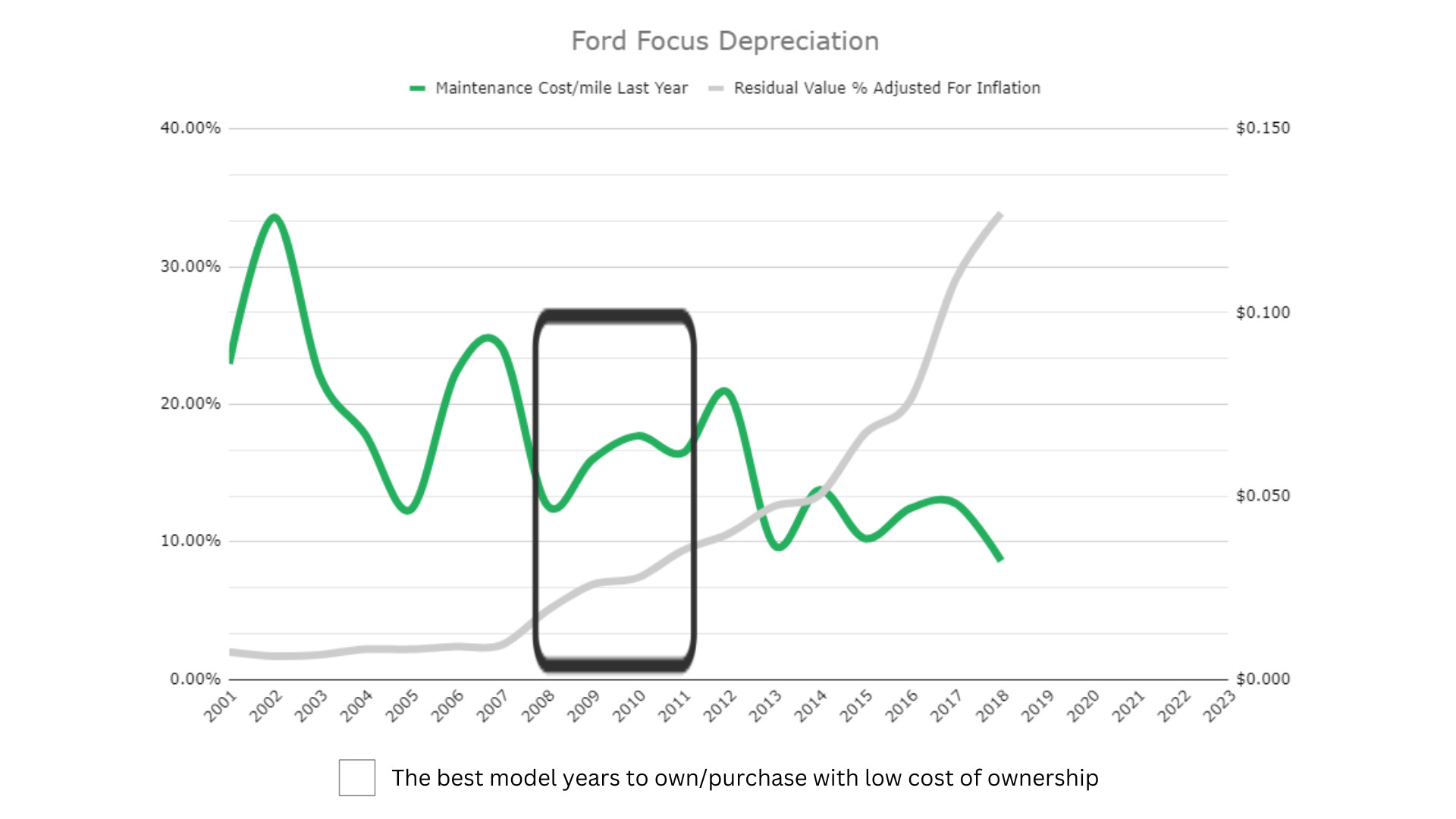 Since the sweet spot for depreciation for the Ford Focus falls between the 2008 and 2011 model years, you can avoid buying a car that will lose value rapidly by opting for a model from one of these years. The 2010 and 2011 models are also known as some of the best years to buy the Focus in terms of quality and resiliency, so opting for a Focus from 2010 or 2011 may be the most effective way to avoid the most depreciation.