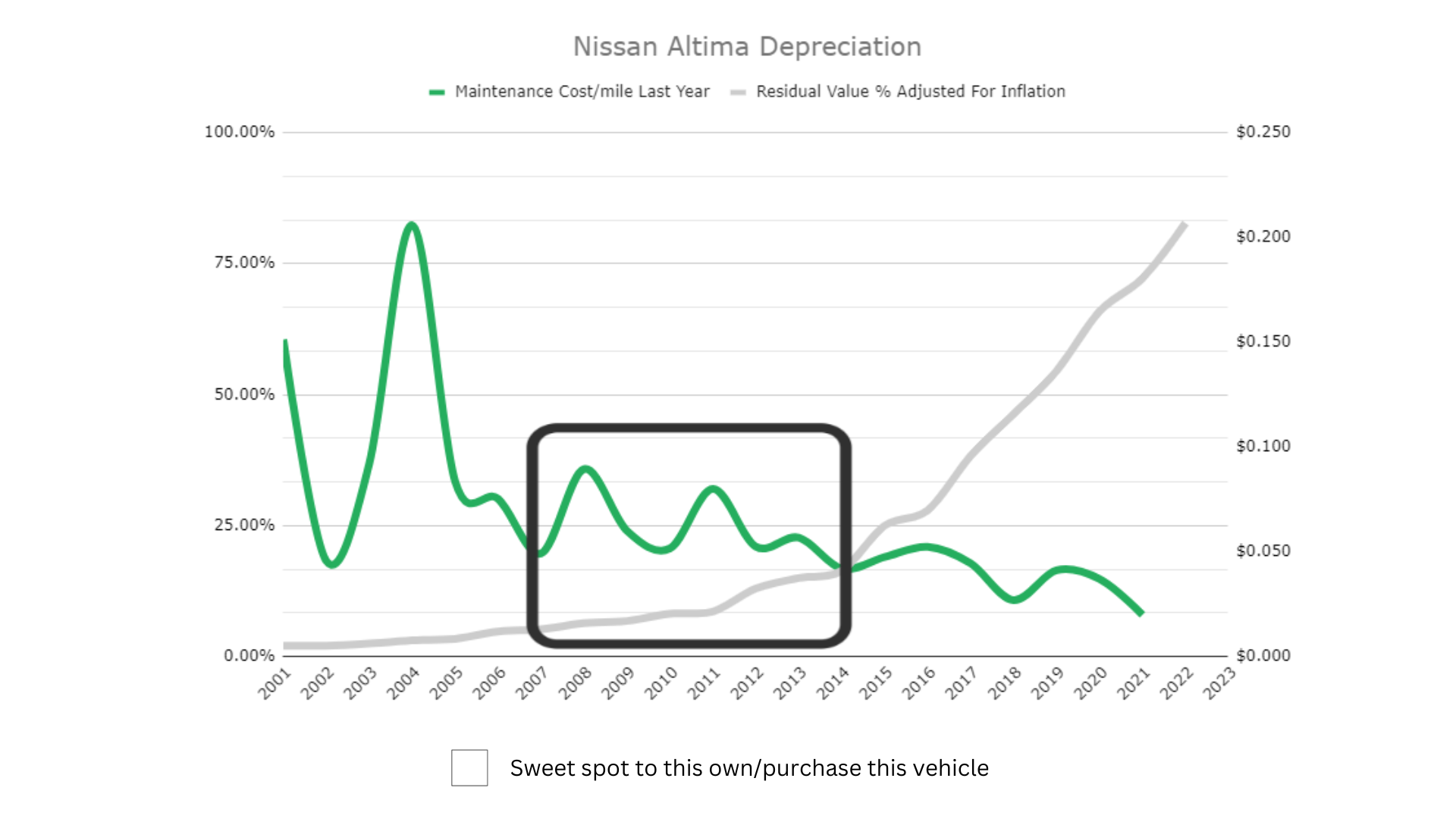 Keep in mind that just because the vehicle costs the least to own in the sweet spot we have outlined here, you still may not want to own the vehicle during these depreciation sweet spot years. Although vehicles depreciate less as they get older, they have more repairs. Duh right? However, keep in mind that repairs don’t just cost you money, they cost you time. Reliability is the difference between being able to make it to your destination on time or missing an opportunity because the car broke down.