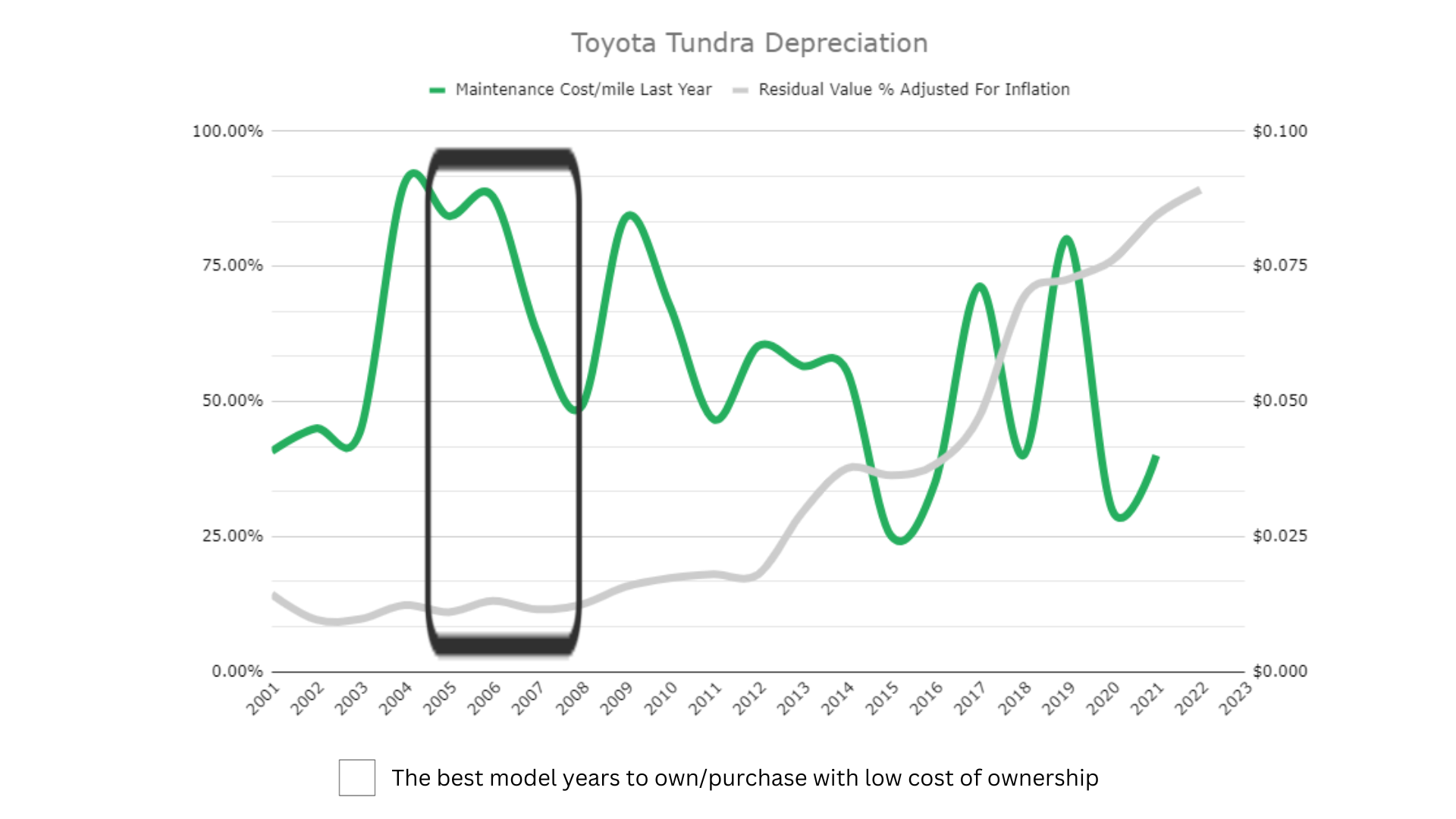 For instance, if you buy a Tundra that’s over 10 years old, it will depreciate as the parts that you need to repair it become obsolete or are replaced in later models for efficiency.