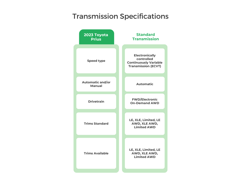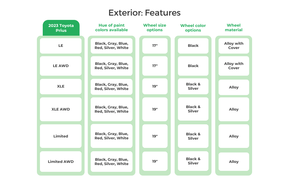 | 2023 Toyota Prius Wheel Drive | FWD | AWD (Electronic On-Demand AWD) | RWD |