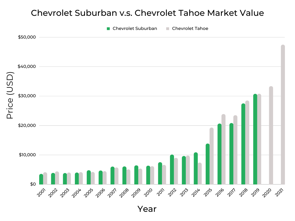 Price History Comparison | Chevrolet Suburban vs. Chevrolet Tahoe