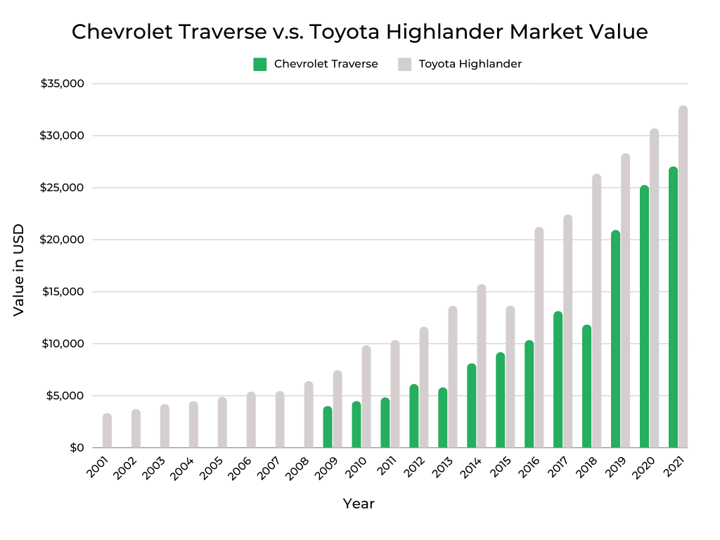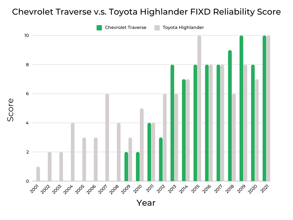Year-by-Year Comparison | Chevrolet Traverse vs. Toyota Highlander