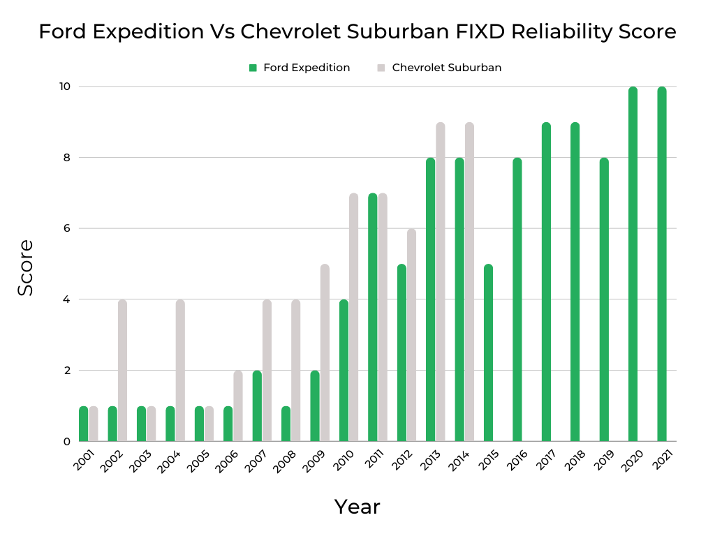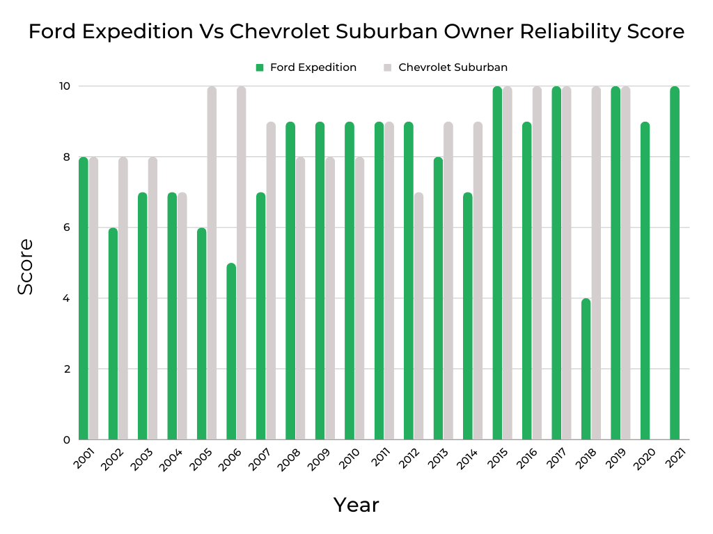 Year-by-Year Comparison | Ford Expedition vs. Chevrolet Suburban