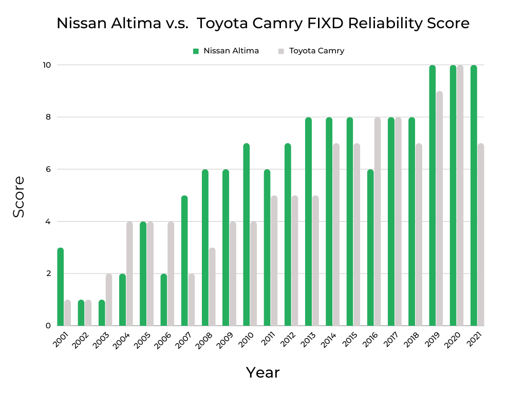 Year-by-Year Comparison | Nissan Altima vs Toyota Camry