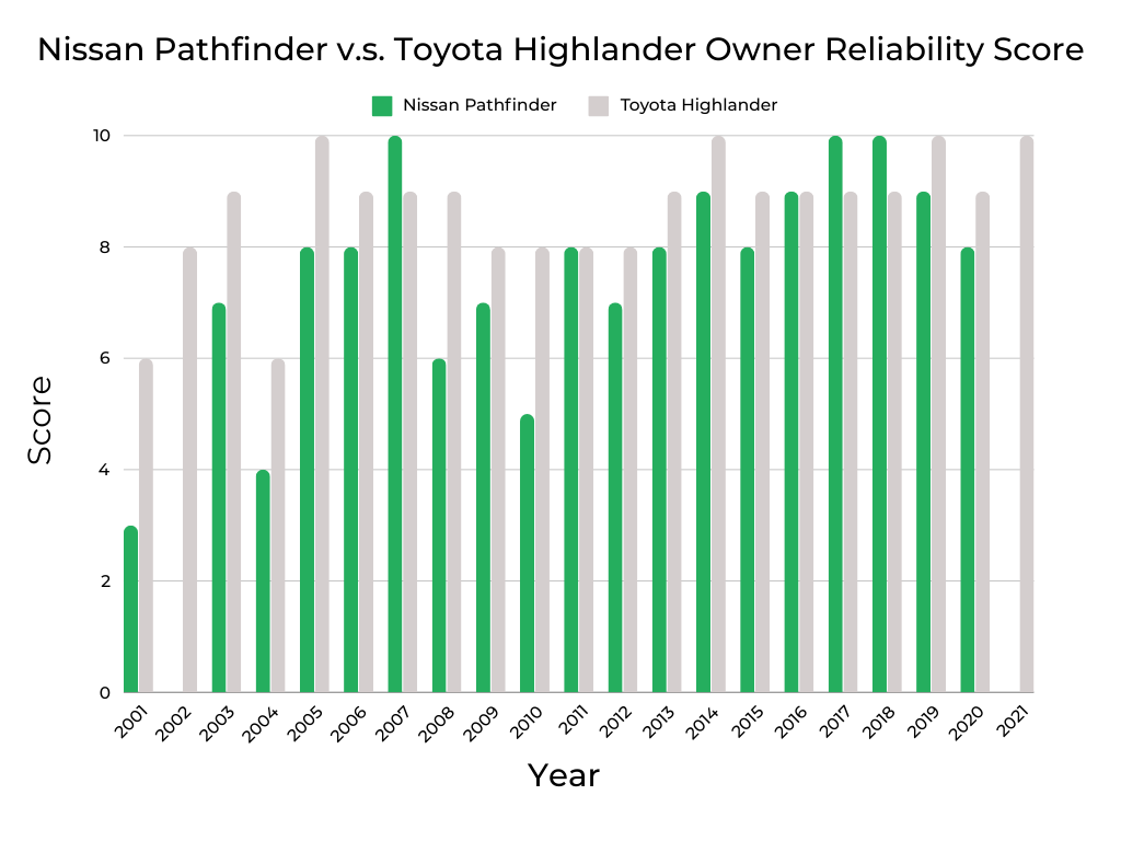 Year-by-Year Comparison | Nissan Pathfinder vs. Toyota Highlander