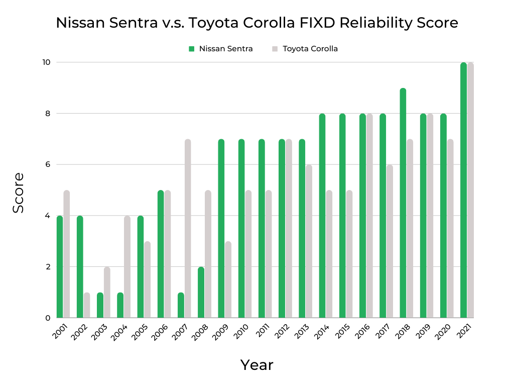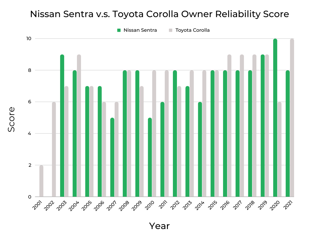 Reliability Comparison | Nissan Sentra vs. Toyota Corolla