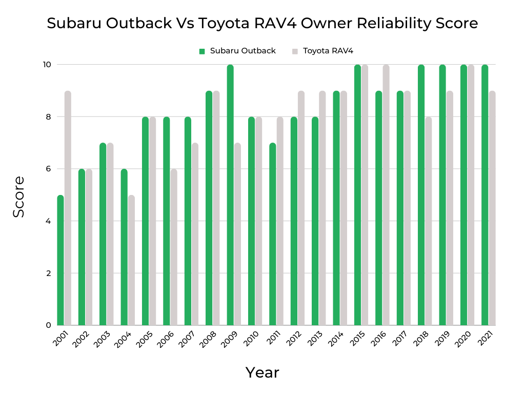 Year-by-Year Comparison | Subaru Outback vs Toyota RAV4
