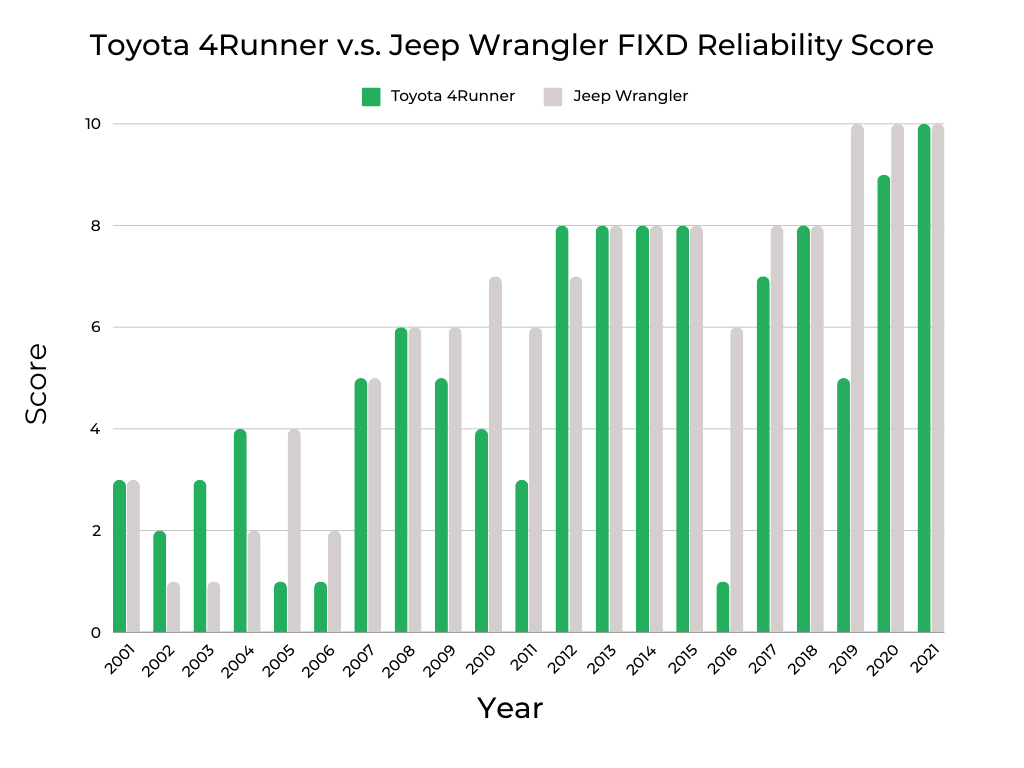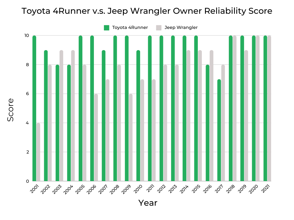 Year-by-Year Comparison |Toyota 4Runner vs. Jeep Wrangler